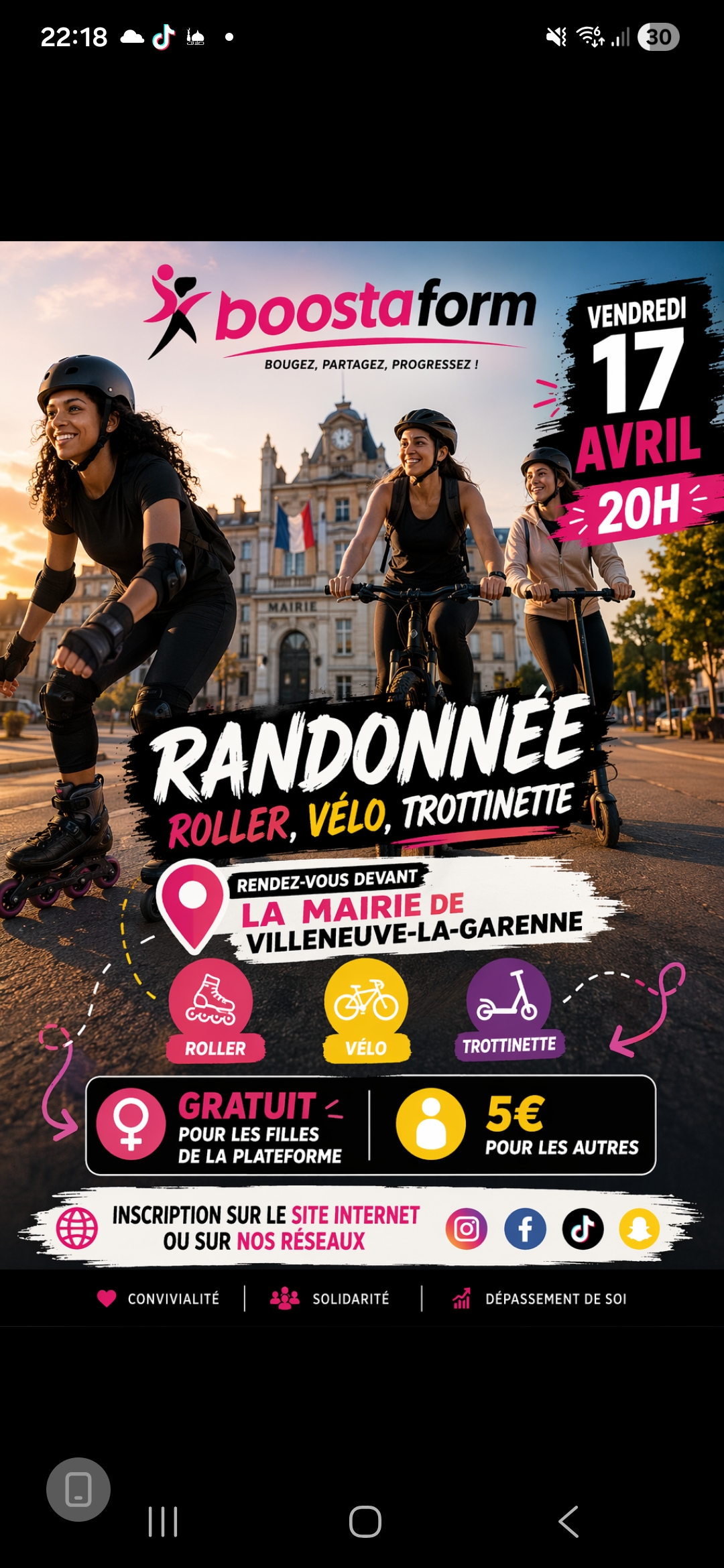 Randonnée Randonnée par Team Boostaform 18 18 people viewed this event. Venez vous amusez en vous dépensant😄 Not Attending Participer Intéressée Ne pas participer Organisé par Team Boostaform Participantes 2 Inscrites Date et heure 2026-04-17 @ 20:00 à 2026-04-17 @ 21:00 Date de clôture des inscriptions 2026-04-17 Lieu Mairie de Villeneuve-la-Garenne Types d’évènements Sortie en plein air Catégorie de l’évènement Sport en plein air Partager avec des amis Facebook Twitter Linkedin Xing Pinterest